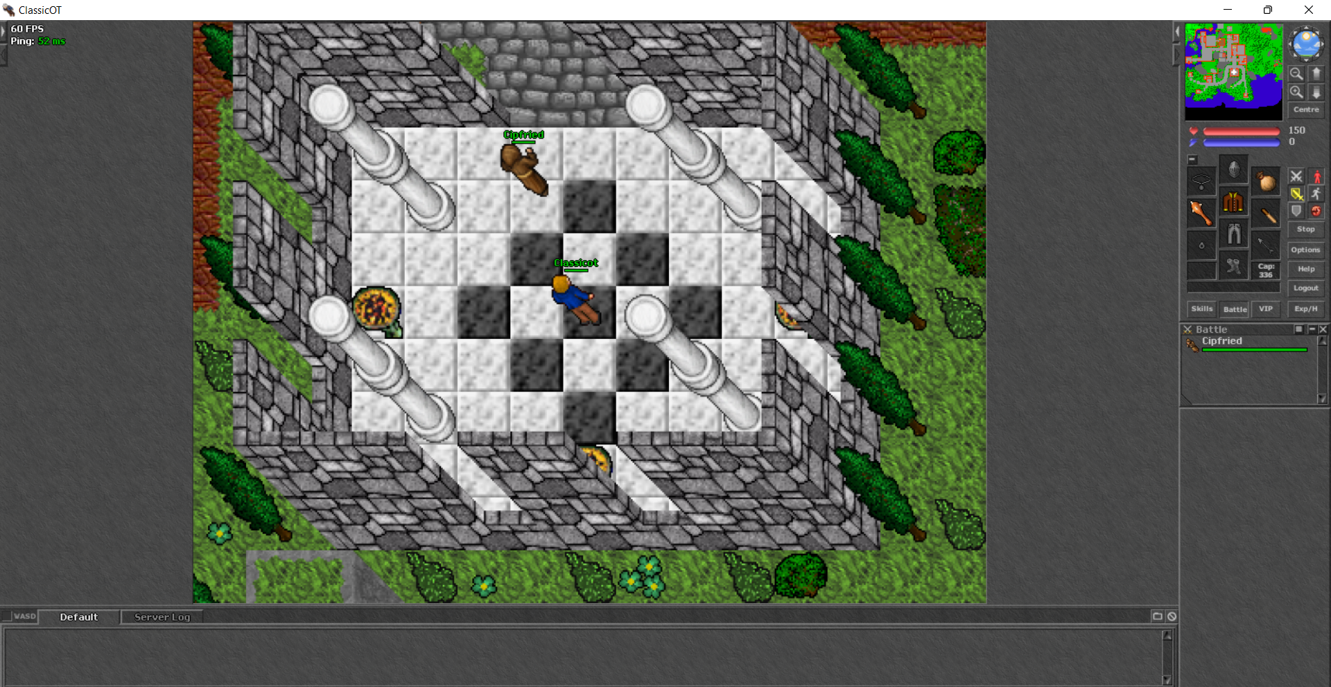 | The game window is where most of the action is taking place. The game window shows a part of the world of ClassicOT, with your own character in the middle. | |